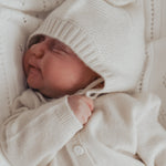 Complete your baby's outfit with the ultimate luxury with our Cashmere Luxxe Bonnet. This silky smooth knit bonnet combines elegance with practicality, perfect for keeping your baby's head cozy and stylish. Ribbed edging and a decorative pom on top provide adorable details to this precious piece.