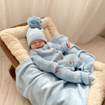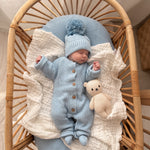 The perfect addition to any outfit, photoshoot, or nursery. Our Classic Baby Blanket is made from a delicately soft 100% organic cotton yarn for the best possible comfort. In the color Powder Blue, this blanket is designed to mix-n-match with a number of Luna + Luca pieces! Create looks all in one color or pick and choose to create a one of a kind look!