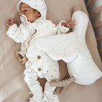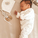 Wrap your little one in cuddly comfort with our organic cotton Bring Me Home Cloud Bundle set. This adorable set is made from our softest pointelle knit organic cotton. Bring them home to a cloud-like dreamland!