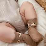 These Deer socks feature an adorable fawn face with little ears that stick up above your baby's ankles for the cutest novelty accessory. Match these socks with any of our neutral colors for the complete head-to-toe look!