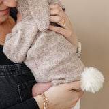 Dress your bun-dle of joy in our Luna + Luca Cozy Bunny Romper for the cutest, cuddliest outfit. Made from a fuzzy, blended yarn, this romper truly has a baby bunny-soft feel. The color, Bunny Brown, is a lightly heathered brown with hints of cream and chestnut for the newest neutral hue. The final touch of this romper is an adorable cream cotton tail on the back. Attach or remove the tail to your liking with a snap closure. Whether they're nibbling on carrots or taking a snooze, this romper is the hoppiest choice for your little one's wardrobe.