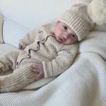 Our Classic Chunky Knit Jumpsuit: A true classic for a reason! 🌟 This timeless piece is the perfect outfit for any little one, no matter the occasion. The chunky ribbed knit gives your baby that plush feel and a texture that says, "I’m cozy, but make it stylish." The front button closure? Functional and adorable, with a vintage charm that’s practically begging for a photoshoot. (Cue the aww moments.) Plus, the hidden snaps along the inseam make dressing and diaper changes a breeze—because, hey, we all know babies don’t have time to wait. Perfect for a gift, a coming-home outfit, or just because your baby deserves to look cute.
